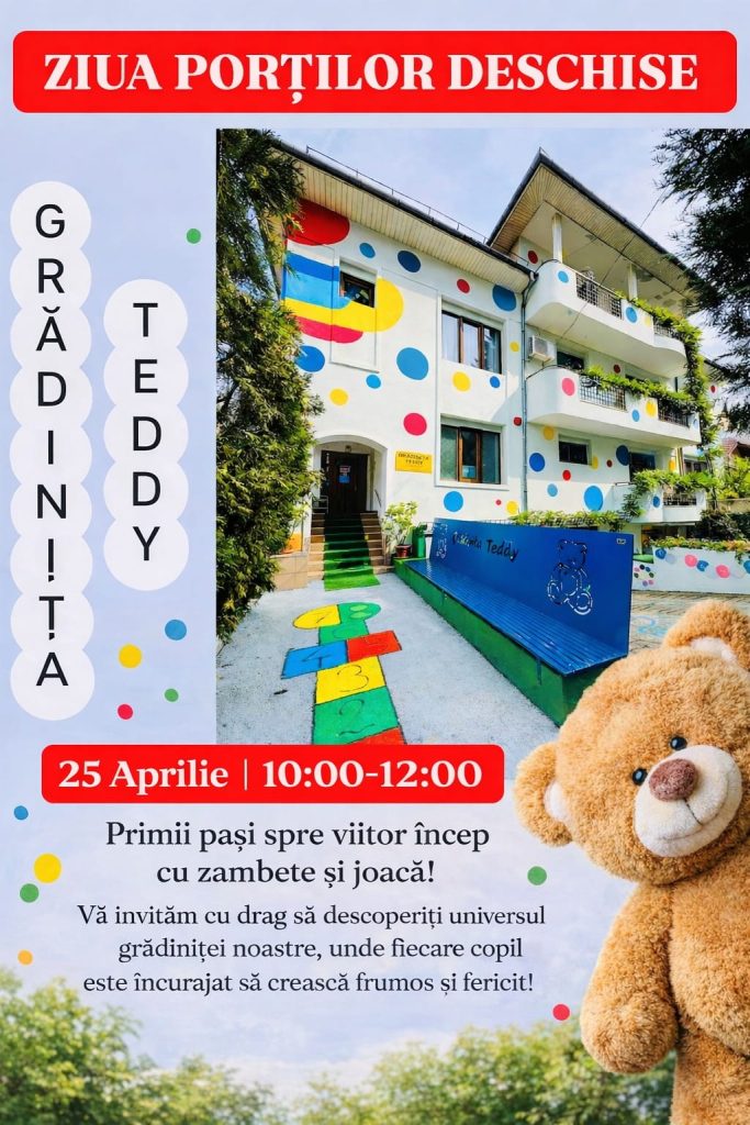 Vă invităm cu drag la Ziua Porților Deschise, în data de 25 aprilie 2026, între orele 10:00 – 12:00, la Grădinița Teddy din Târgu Jiu.